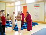 Lama Pagyal prays over the offerings, which were